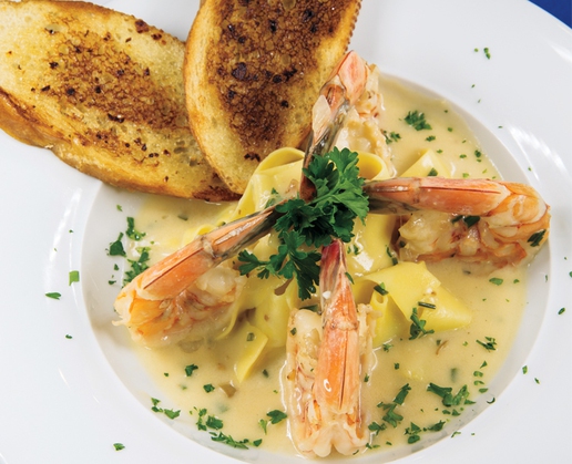 For your main dish, ordering a classic cut like filet mignon, New York strip or bone-in ribeye is the obvious choice, but other entrées are worth trying, such as the beef tips in red wine served with pappardelle pasta, or the shrimp scampi sautéed with white wine, garlic, butter and lemon and topped with chives.