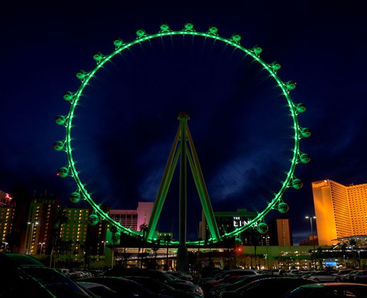 At The Linq, Guy Fieri’s Vegas Kitchen & Bar presents “The Guyrish Man”—corned beef and cabbage steak, smoked bangers and mashed potatoes, as well as a Guinness-infused gravy. At the Linq Promenade, Off the Strip Bistro & Bar offers corned beef and hash (or cabbage), as well as specials on Jameson, Fireball, Guinness and Murphy’s. To really get you in a holiday mood, the High Roller observation wheel lights up at night with various shades of green. While you’re on your way to ride the wheel, really get in the mood by stopping at the Sky Lounge, where you can get a “Shamrock Sour” made with Irish whiskey, melon liqueur, sour mix and Sierra Mist.