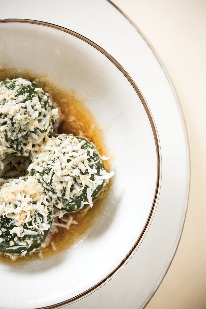 For the main event, sharing is a good idea. The salt-baked branzino is intended for two, and the 32-ounce prime dry-aged ribeye is large enough for the whole party. But you don’t have to share, and grilled wagyu bavette steak or grilled Green Circle chicken may be more to your liking. And have an adventure—try the tasting menu, where you’ll find goat.