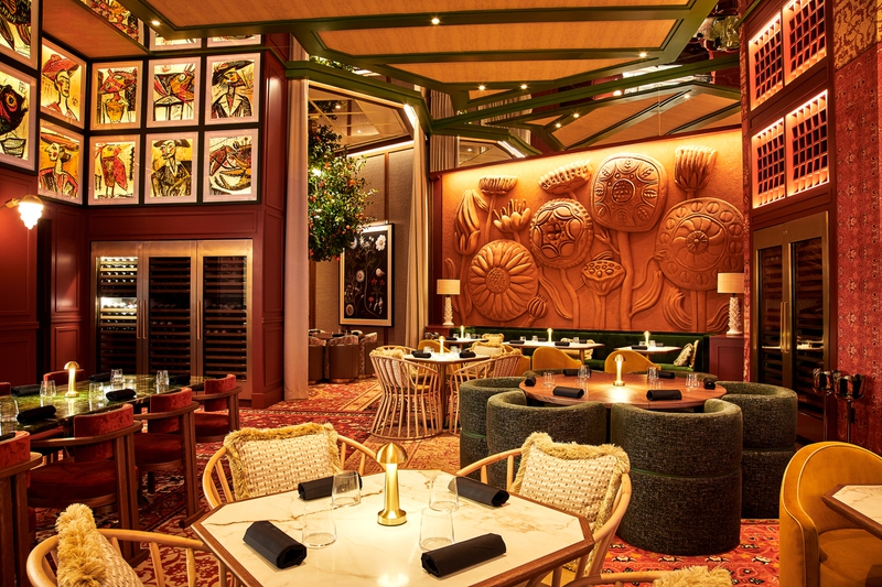 The woodfire-grilled Ora King salmon is served with roe and lemon air, while pollo al ajillo present chicken thighs plus wilted spinach with apples raisins and pine nuts.
