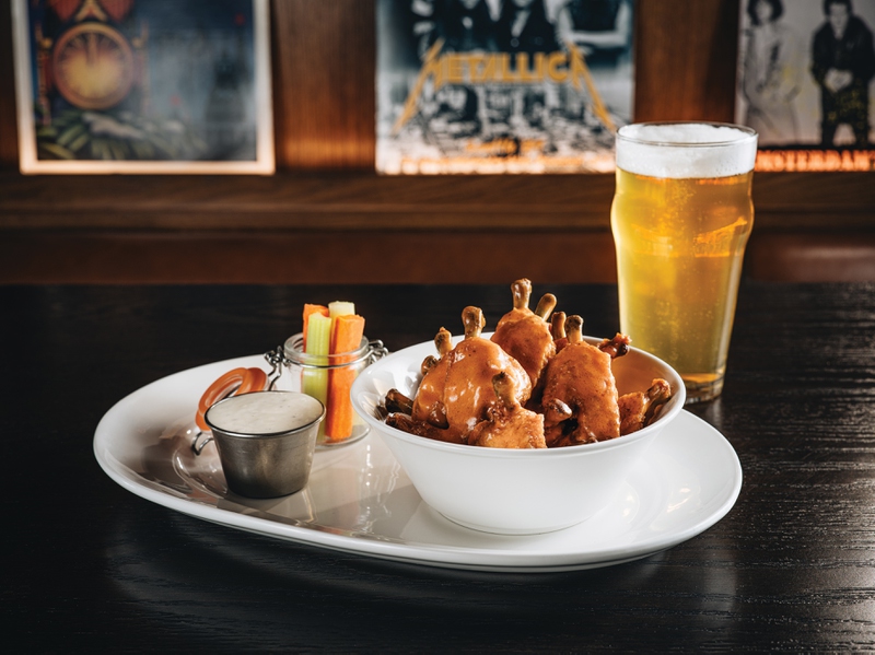 A mouthwatering warm artichoke dip had me hoarding chips through to dessert, but your server is certain to be clearing away empty plates from the miso cod lettuce cups, pigs in a blanket, served with pub cheese and a wholegrain mustard, and three shrimp tacos with roasted garlic and avocado. The eye-catching lollipop buffalo wings come with the classic combination of celery, carrots and ranch.