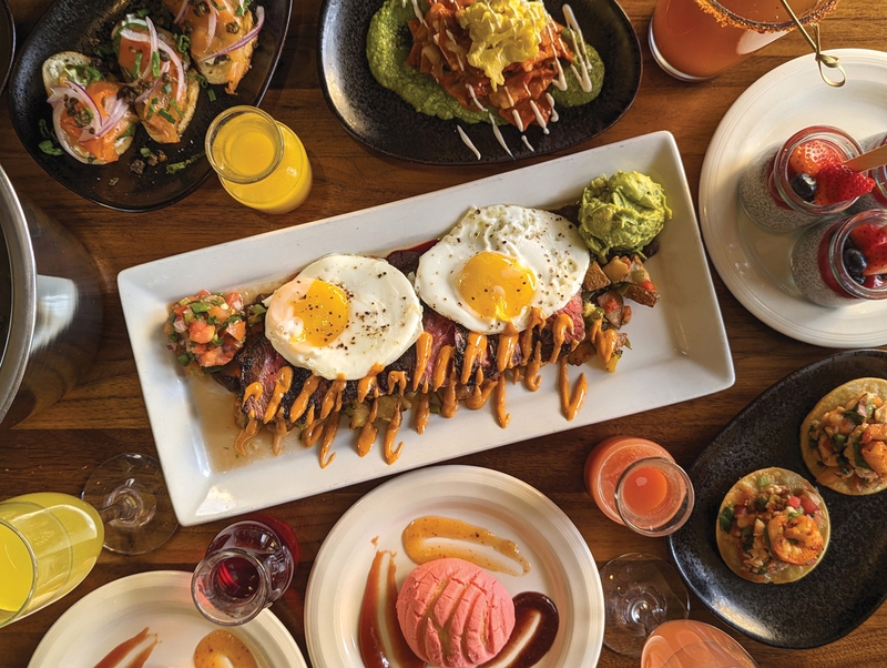 At the weekend brunch, sit on the patio and order from an array of small shareable plates and larger entrées like the steak and eggs; spicy chicken tamale with guajillo sauce; salmon avocado toast; horchata French toast; and prickly pear parfait. Plus, Border Grill has some of the most delicious margaritas around, with options such as the blood orange margarita with Cazadores blanco tequila and the Zig-a-Zag guava margarita with Zignum tequila. At brunch, the flavors of pineapple, vanilla and lime accent the margarita.