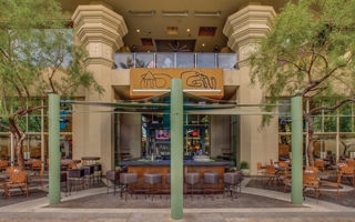 Those vibrant flavors come together at Border Grill in such favorites as chicken poblano enchiladas smothered in a verdant sauce; fish tacos available both grilled and beer-battered; steak nachos with organic black beans, Yucatan pork (achiote pork roasted in banana leaves) and a chili relleno burger, piled high with a cheese-stuffed poblano, tomato and chipotle aioli. You can switch out the beef for Impossible meat if desired.