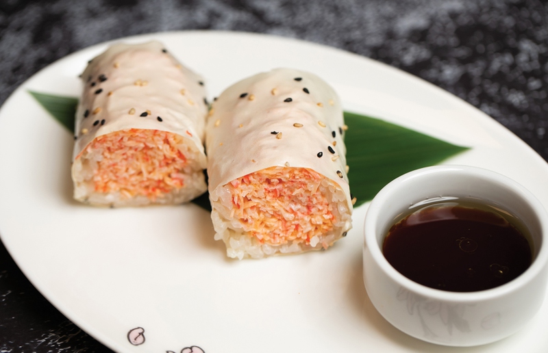 In Resorts World Las Vegas’ The District you’ll find a grove of sakura trees, with the blooms seemingly swaying on a light breeze. The entrance to FUHU is enchanting, with branches creating an arch leading to the impressive double doors and inviting patio seating. Inside, the modern décor encompasses a small dining area on one side and a fun bar on the other. In the dining area, a long window creates an open kitchen feel. Down a short corridor is the dining room with a patio facing the Strip. It’s a dynamic space, with cane-back chairs and eye-pleasing lighting throughout the area.