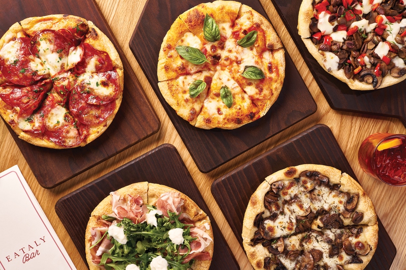 Italian Street Food: Fried zucchini, shitake and mozzarella are highlights; La Pasta Fresca: After watching the pasta-making, try the rigatoni cacio e pepe; La Pizzeria: Roman-style slices; Pizza al Padellino: Round pan pizza is the star here; Le Polpette: So many ways to eat a spicy meatball! Plus burgers and pizza; La Carne e Il Pesce: Here’s that steak—get ribeye and NY strip plus fish like king salmon and wild-caught tuna; La Salumeria: Build a board of meats and cheeses from U.S. and Italian producers; Il Cioccolato Venchi: Sweet baked treats; I Dolci Italiani: Plenty of cannoli and bomboloni to satisfy a sweet tooth; Caffè Lavazza and Pasticceria: Caffeine-laden beverages that will open your eyes; Il Gelato: Cold, creamy—perfect for summer desserts; Crepes: Need we say more?; L’Aperitivo: Located near La Cucina del Mercado; Gran Caffè Milano: Near the casino entrance; Eataly Bar: On the lower level—try an Aperol Spritz at all three.