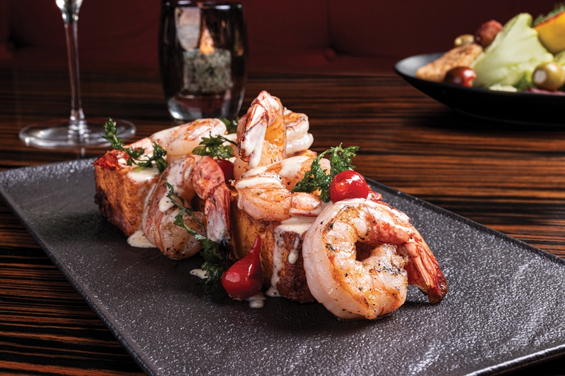 When it comes to steak, you’ve got your choice: 16-ounce bone-in ribeye, a 10-ounce filet mignon with lobster, 14-ounce New York strip and an 8-ounce wagyu rib cap. Enhancements include a blue-cheese crust, lobster tail, Oscar-style with crab or scallop, lump crab and shrimp scampi. The slow-roasted prime rib comes in three sizes from 12 to 20 ounces, and it’s also the star of the prix fixe menu. Other dinner options include a half a rotisserie chicken with bourbon barbecue pork baked beans; black pepper cream shrimp with grilled shrimp and a polenta cake; and seared salmon.