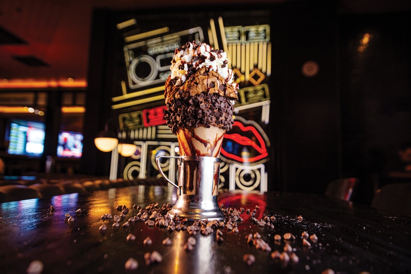 Few venues on the Las Vegas Strip do milkshakes like this hot spot. For chocolate fans, this beast is dessert nirvana, made with mini chocolate chips and topped with two chocolate brownies, whipped cream and chocolate drizzle. And, of course, the rim is frosted with chocolate!