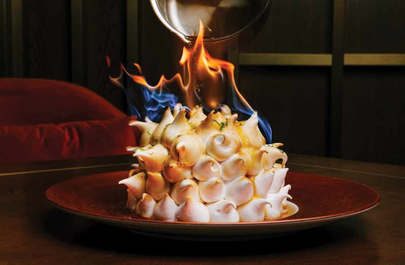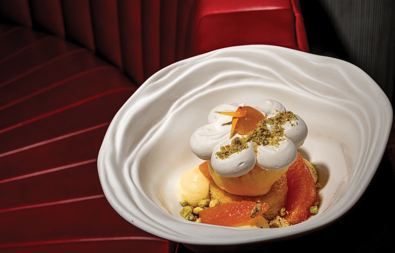 One of the country’s favorite—and most tricky to make—desserts is the baked Alaska, and this version at Carversteak is a must for anyone on Instagram. This iteration is made with lemon sorbet, vanilla ice cream, toasted meringue and brown butter financier. It’s made for large groups and gets flambéed tableside. Get your cameras out!