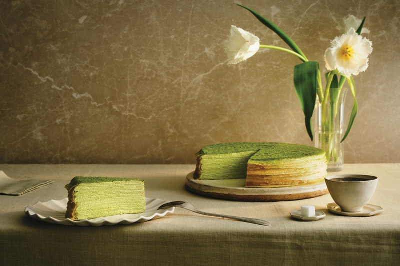 There are cakes and then there are creations like this, an elegant and eye-catching beauty that combines the flavors and textures of France and Japan. Paper-thin handmade crepes are carefully layered atop one another, each one getting a gentle layer of green tea pastry cream. The whole creation is finished off with Japanese powdered matcha. In every way, it’s irresistible.