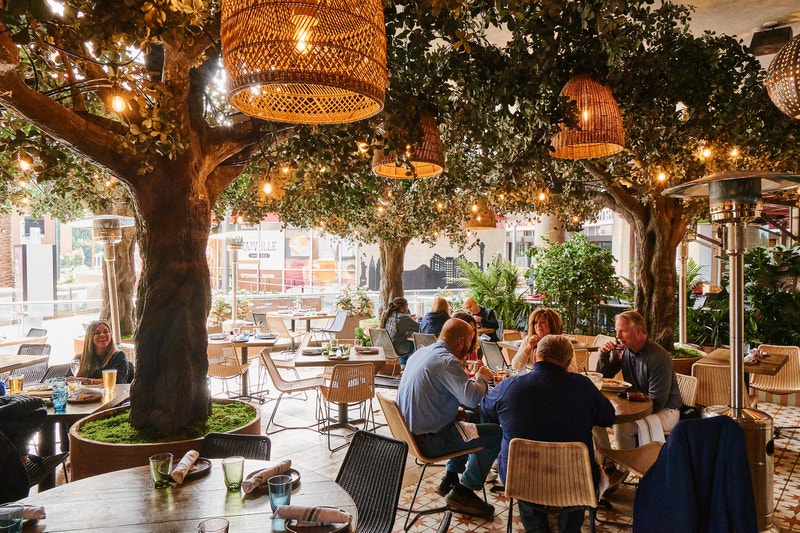This lovely space at FSLV—Fashion Show Las Vegas, which was remodeled to give off the vibe of Tulum (successfully, we might add!), has an outdoor area that’s perfect for summer dining—trees with natural shading and misters that turn on as soon as the mercury hits 100. While enjoying views of Wynn Las Vegas directly across the street, dine on classics like frozen margaritas and cooling dishes like spicy seafood ceviche.