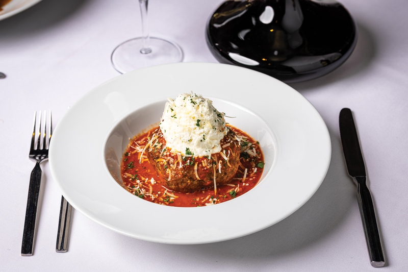 This being a classic steakhouse, you can also rely on some of your favorite salads. The iceberg wedge here is absolutely a must-try for fans of the staple, made with applewood spiced bacon jam, smoked ham, Gruyère, heirloom cherry tomatoes, cucumber, red onion and your choice of Thousand Island or Roquefort. Vegetarian? Try the beets and brie salad, made with slow-roasted red and gold beets with arugula, citrus supremes, brie cheese mousse, sugar-spiced walnuts and feta cheese.