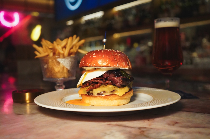 Speaking of burgers, at sister Carver Road property Carversteak at Resorts World Las Vegas, you’ll find the Carver-Steak & Egg burger, a decadent dish with a Creekstone Farms smashburger, Gruyère, shallots, horseradish cream, a Snake River Farms American wagyu rib cap and a fried egg. You can see that “decadent” is quite an understatement. It’s only available at the bar starting at 5 p.m., and in limited quantities. You can also order wagyu beef skewers, which have been grilled over charcoal.
