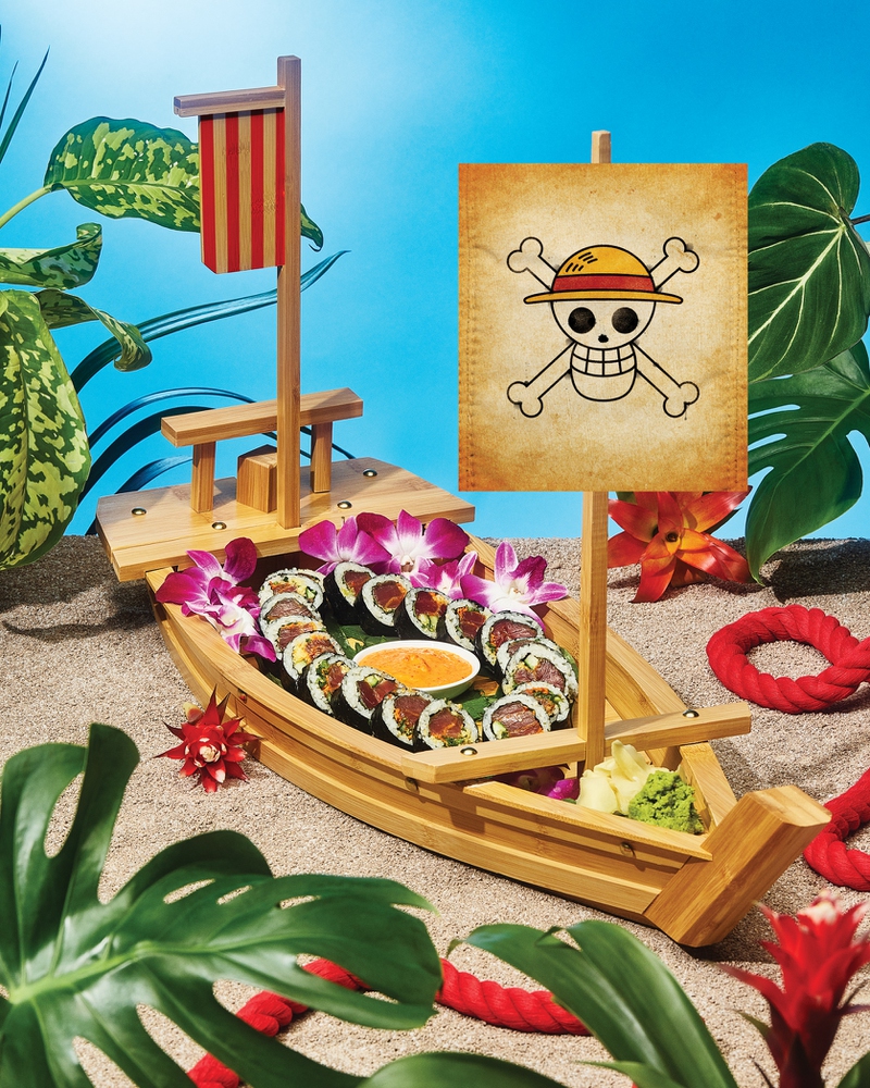 The list of dishes inspired by Netflix favorites goes on and on. Fan of Wednesday? Then let Thing help you dip into a huge pile of the black-colored Nachos Nevermore that are smothered in blood-red salsa and packed with cheddar cheese sauce, avocado, jalapenos, queso fresco and crema. Did you love the suspenseful Bird Box? Then order up the Bird, Boxed, an actual box stuffed with fried chicken, mac and cheese, biscuit and potato wedges. How about the swashbuckling good time show, One Piece? All eyes in the restaurant will be on your table when you order The Grand Showboat, filled to the decks with nori rolls, spicy tuna sashimi, cured carrots, cucumber and pickled ginger. And keep it light with the quinoa-chickpea patty Lucky Boy Burger or the Beverly Hills Cobb.