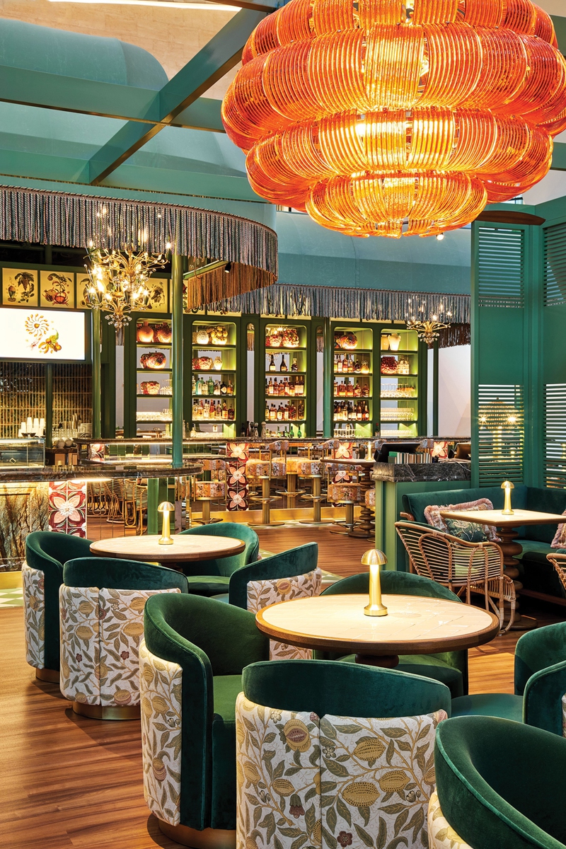 Indulge in chef José Andrés’ little slice of sweet and savory heaven that is saturated in beautiful textiles and furnishings, giving the perfect platform for equally beautiful small bites, sips and dishes (the sweets on display are sure to whet the appetite). During the day, settle in from some shopping to enjoy high-end Spanish-inspired coffees, including espresso, cold brew and drip, and pair them with a strawberry ganache croissant, vanilla shortbread cookies or palmeras, a caramelized puff pastry dipped in chocolate. When night falls, Bar Centro offers caviar service, oysters on the half shell, The Jamón Experience, various hand-cut slices of pig and other goodies like puntillitas fritas, a simply fried baby squid with spices, and Singapore’s favorite street food, kueh pai ti, filled with shrimp, peanuts and chili sauce. Again, don’t pass up that sweets display for even more tasty desserts.
