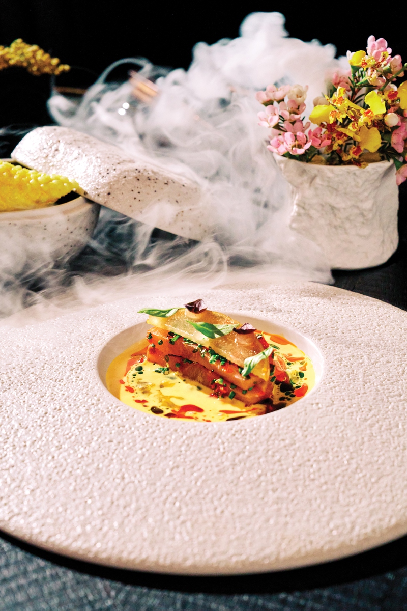 Fragrant spiced barramundi with galangal curry is especially treasured by diners, while Westholme Australian wagyu strip loin brings a new appreciation for beef. If there are not enough courses to satisfy, there are add-ons offered, such as the Kaluga caviar macaron with champagne citrus crema and dill. “The tasting menu is a culinary journey and we’re ready to take folks for a ride,” Ford said in a press release shortly before the restaurant opened.