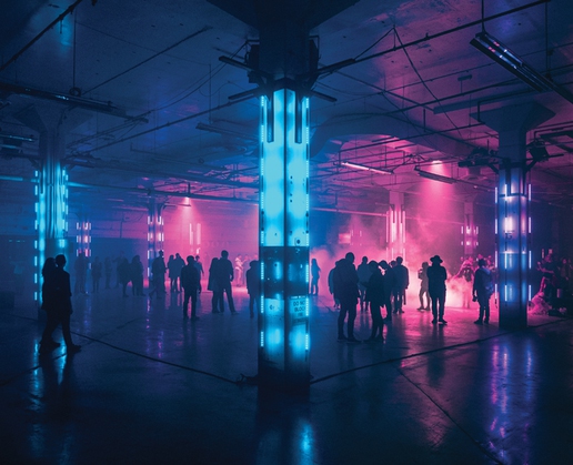 Currently on display at Museum Fiasco is the Cluster, an exhibit by Playmodes Studio, a large-scale installation combining light, technology and sound coming from multiple pillars for an immersive show.