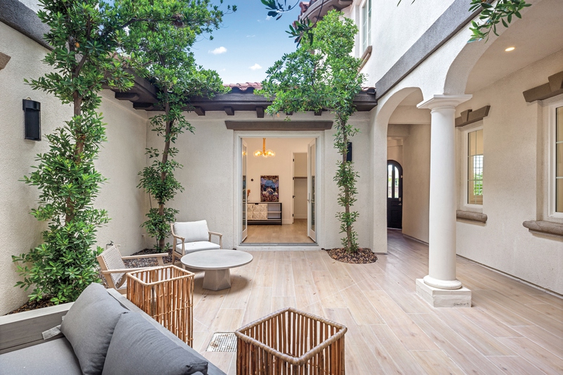 The 5,037-square-foot, two-story, Spanish mission-inspired villa, listed by Ivan Sher with the Ivan Sher Group, has five bedrooms, six bathrooms and a three-car garage (with resin flooring), and has just been completely remodeled. It’s like moving into a brand-new home. The first thing your guests will notice is the private courtyard through which they enter; it’s got indoor-outdoor wood flooring and a fireplace. You’ve taken care of the wow factor before even entering the home!