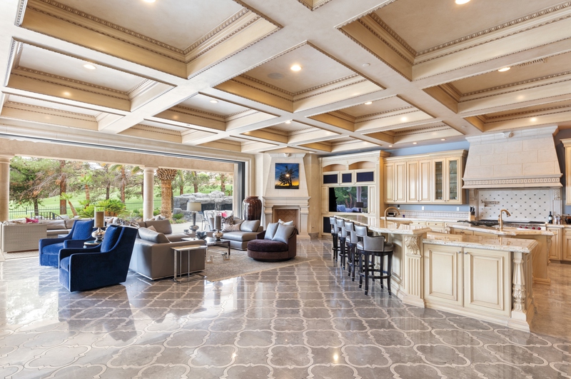If you’re a fan of both golf and high-end living, you may want to consider living at Southern Highlands. It’s a beautiful masterplanned community with seven parks, walking paths, hiking and biking trails, and two dog parks—and the 18-hole Southern Highlands Golf Course, designed by Robert Trent Jones Sr. and Jr. For families, it really doesn’t get much better than this. And a gorgeous home has just become available there, a sprawling estate that’s the ultimate in luxury.