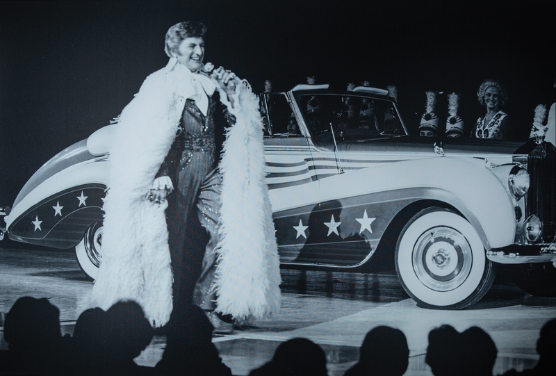 Another Vegas legend, Liberace, held court inside the International Theater beginning in 1972 until the early 1980s. At the time, Liberace’s salary was one of the highest, close to $200,000 per week. His show was a spectacle, with flashy, flamboyant outfits and his arrival onstage by way of a Rolls-Royce.