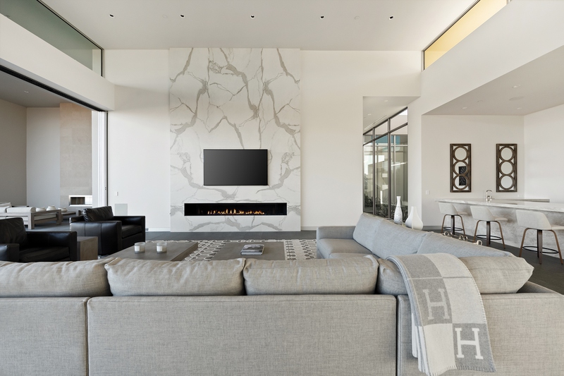 Sitting on a 1.37-acre lot, this home provides stunning views of the Strip from multiple vantage points, and its architecture combines desert modern sophistication and minimalist design. A huge bonus of this home? It’s turnkey, with specially chosen designer furnishings, as well as artwork by photographer Peter Lik.