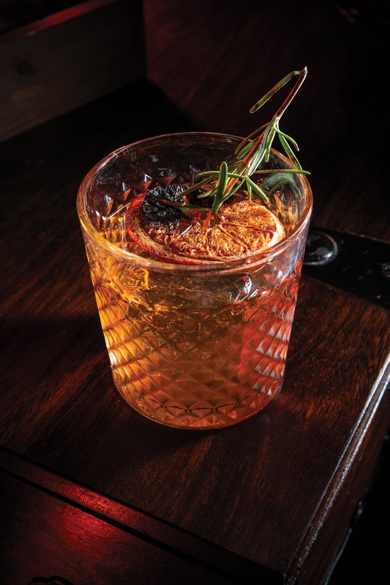 Guests will be enveloped in a bar and lounge that exudes dark, gothic and alluring vibes, decorated with a mashup of Victorian and bohemian furnishings. Here, the word is “explore” in both content and cocktails. Start with the many interesting-looking pieces inside the many curio cabinets placed throughout the space. Each piece is assigned a number, and you can find out its name and story by scanning a QR code with your phone. Look up No. 4381, the Mystical Typewriter, where folklore claims a tale composed with this typewriter will make its author famous but with some irksome caveats. Or how about No. 6641, the Copper Watering Can, once owned by Lucretia Spatz, who used it to water her prize-wining begonias, but the neighbors had no idea what she was grinding up in her basement to use as fertilizer. There’s also No. 8251, the Dancing Squid, once belonging to the breeders of competitive show-jumping squids. There are so many more eye-catching and strange tchotchkes to explore, and we suggest before adventuring on that you pay a visit to the bar, where the mixologists are serving up an abundance of incredible cocktails.