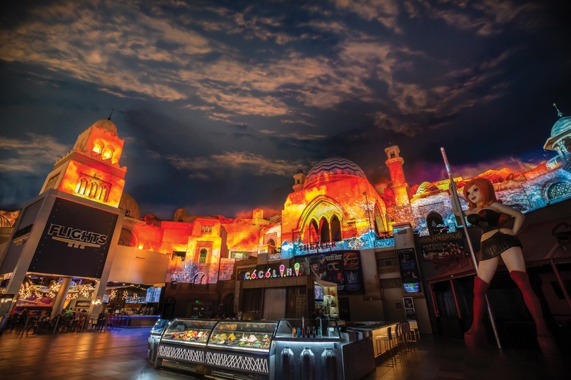 Playing every hour on the hour from 10 a.m.-11 p.m., this 3-D projection video show has lava lighting up buildings and water rushing down walls for a great immersive experience.