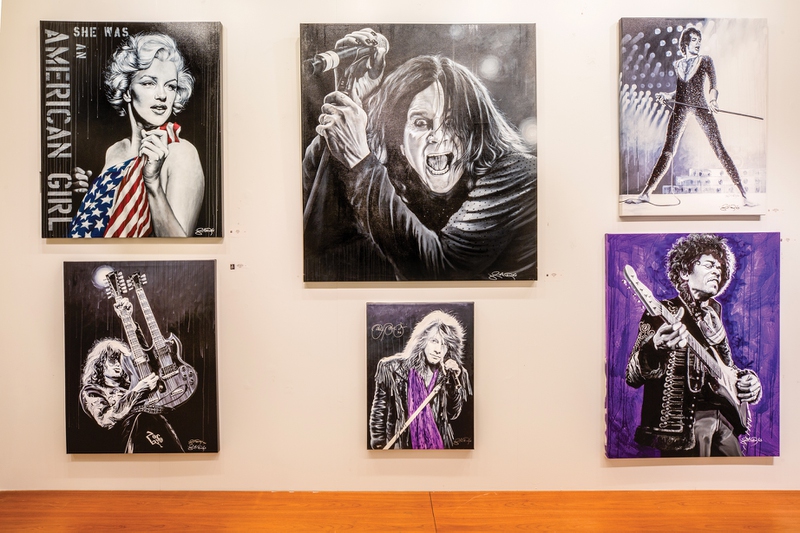 Make your first stop at Animazing Gallery, where pop art and classic art collide in a cool retail space that has such interesting pieces it’s like walking through a museum filled with iconic cultural references. Animazing Gallery first found fame in Soho, New York, more than four decades ago. Over that time, owner Nick Leone has amassed a massive collection of art, including the paintings of John Douglas (pictured). Douglas, the drummer for Aerosmith, travels with a blank canvas and acrylic paint. When touring, he’ll use his hotel room as his studio, mixing the paints inside a drum head. He’ll then tack the canvas up, paint and, when finished, lets them drip dry in the bathroom shower.