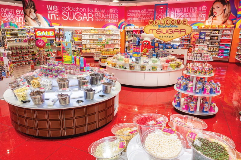 • IT’SUGAR offers candy that has gone viral on TikTok, including Guppers, Silky Gem crystal candy, chamoy pickle kit and a huge, huge assortment of freeze-dried confections. IT’SUGAR also stocks stuff for some adult fun like candy bras and G-strings, penis-shaped pops and a gummy sutra game. So get naughty! It is Vegas, after all.