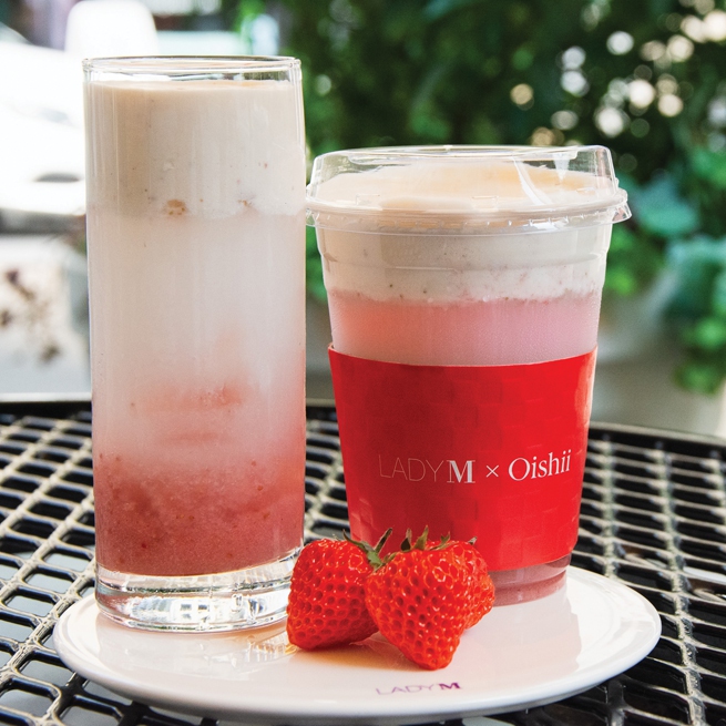 The boutique bakery offers a limited-time drink, the Oishii Berry Breeze, made with sweet Omakase berries, a strawberry purée drizzle and plant-based whipped cream.
