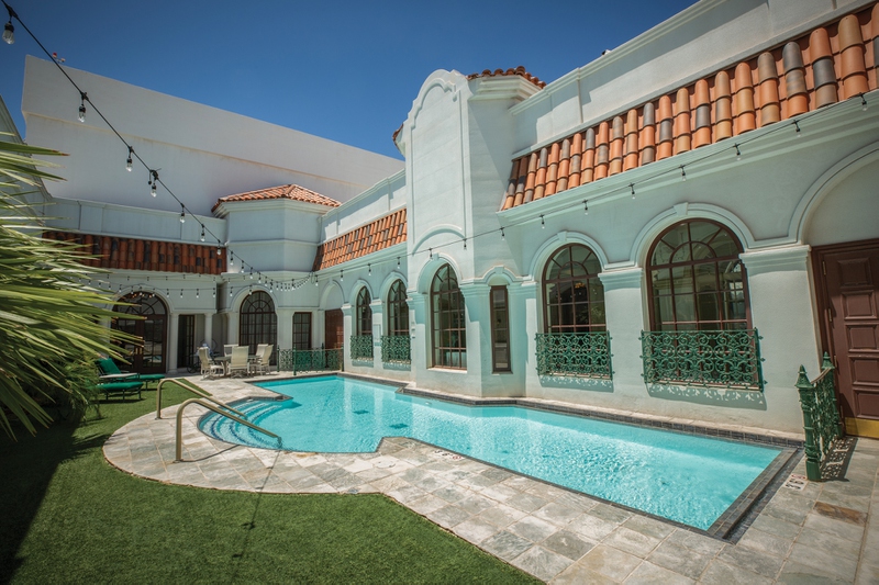 For a movie night, settle into the media room. For a dip, there’s a private pool with deck for sunbathing, lounging and eating. Each room has a gas-lit fireplace and hand-painted murals on the walls. Multiple floor-to-ceiling windows allow for unbeatable views of the city and beyond.