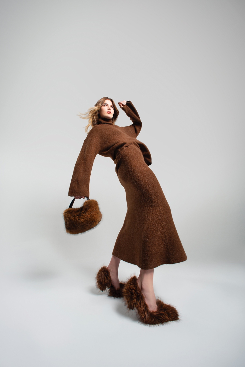 Cross: H&M Premium Collection alpaca blend skirt ($84.99), oversized alpaca blend sweater ($99) and crossbody bag ($39.99), shoes upon request