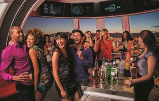 Rotating to 550 feet above the Strip, the High Roller recently celebrated 10 years and offers amazing views. Try the Happy Half Hour package, including a bartender and open bar.