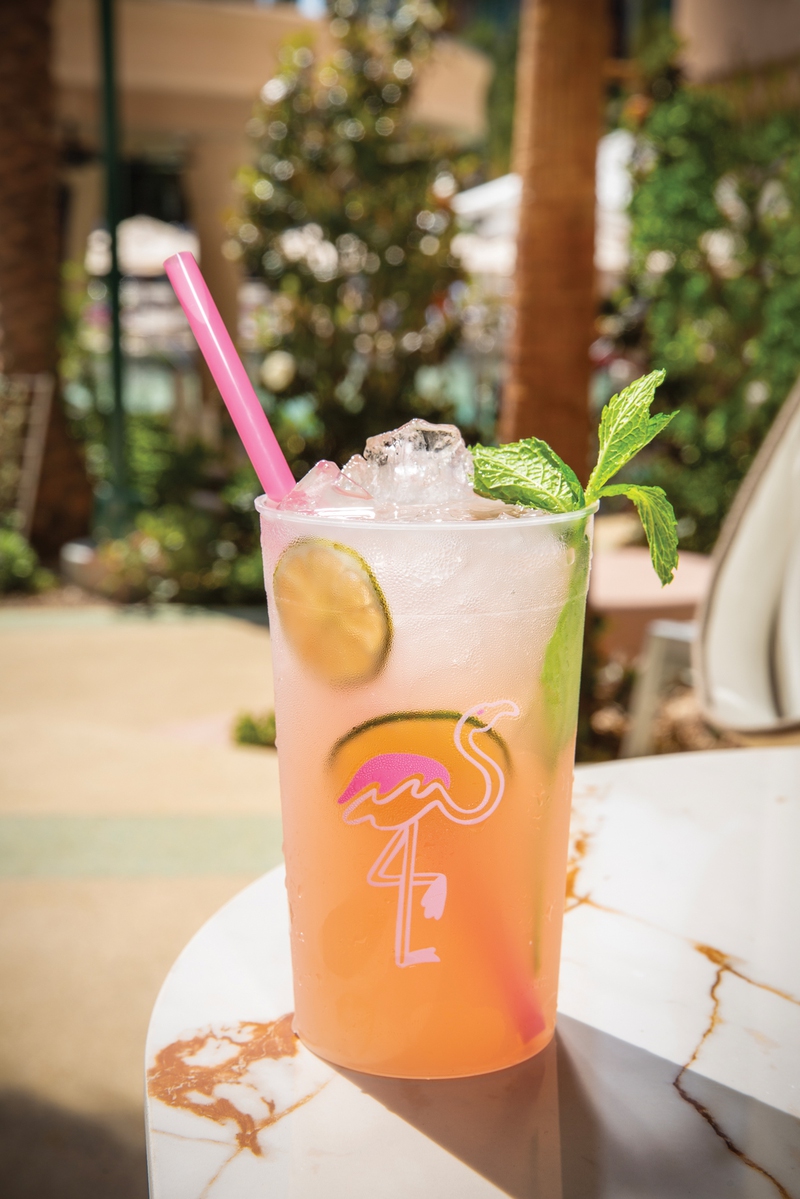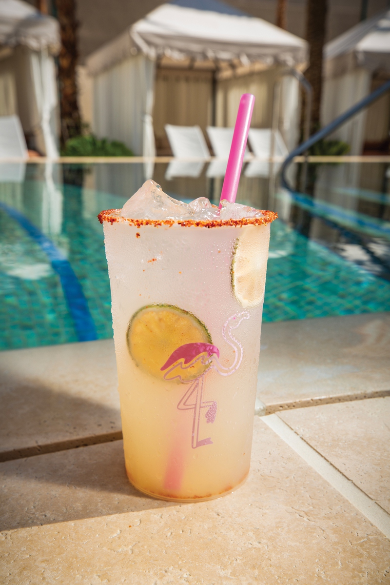 “The all-new GO Pool feels like a tropical oasis escape in the heart of Las Vegas Boulevard,” says Ryan Kelly, Flamingo’s director of beverage. “It delivers a vibrant, high-energy atmosphere and welcomes all (21+) guests looking for a good time. The design draws from the Flamingo’s iconic mid-century modern and retro-deco roots, blending soft, beachy tones and playful pastels. This creates a fresh, contemporary vibe that still honors the history of the Flamingo.”