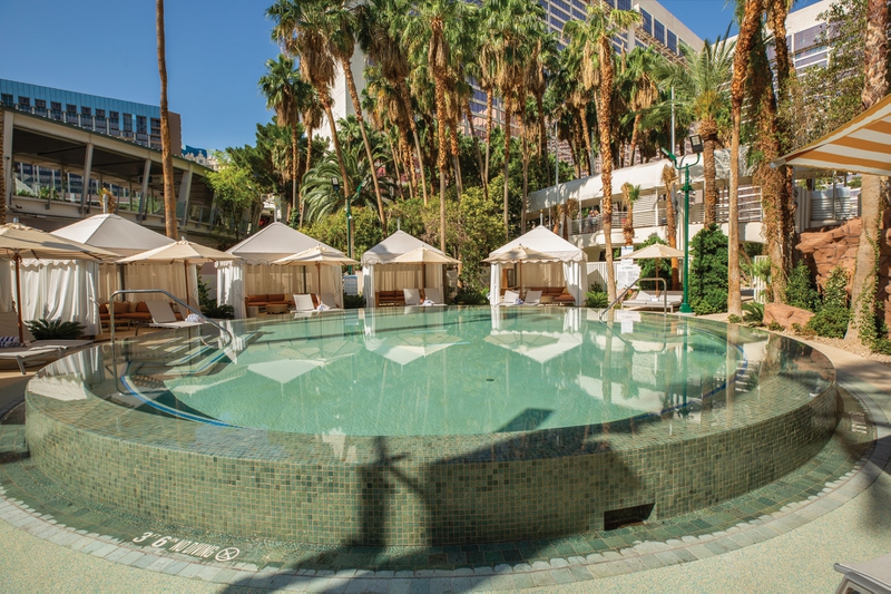 Swim-up bar. DJs. Swaying palm trees. Waterfall with grotto. Luxurious cabanas. Multiple pools. Um, where do I sign up!? The newly renovated GO Pool at Flamingo received a gorgeous upgrade with a ton of great amenities, but kept the fun vibe that has long been a draw for guests looking for that cool pool party hot spot.