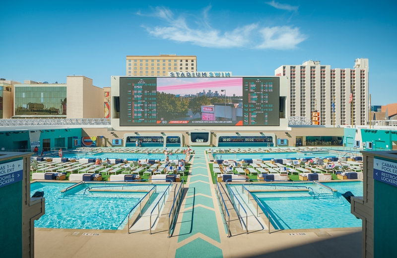 For more bright bursts, head downtown to Plaza for its weekly Friday “Welcome to the Weekend” fireworks spectacular. Viewable from the rooftop pool deck and Carousel Bar beginning at 9:15 p.m., this entertaining extravaganza brings a block party vibe to the lively downtown area. Have an exceptionally fun time watching the sky light up at Golden Nugget’s Night Swim at the Tank Pool. On July 4, High Rocktane takes the stage to provide live tunes while guests sip, swim and shoot down a water slide that goes through the Tank’s centerpiece shark aquarium.