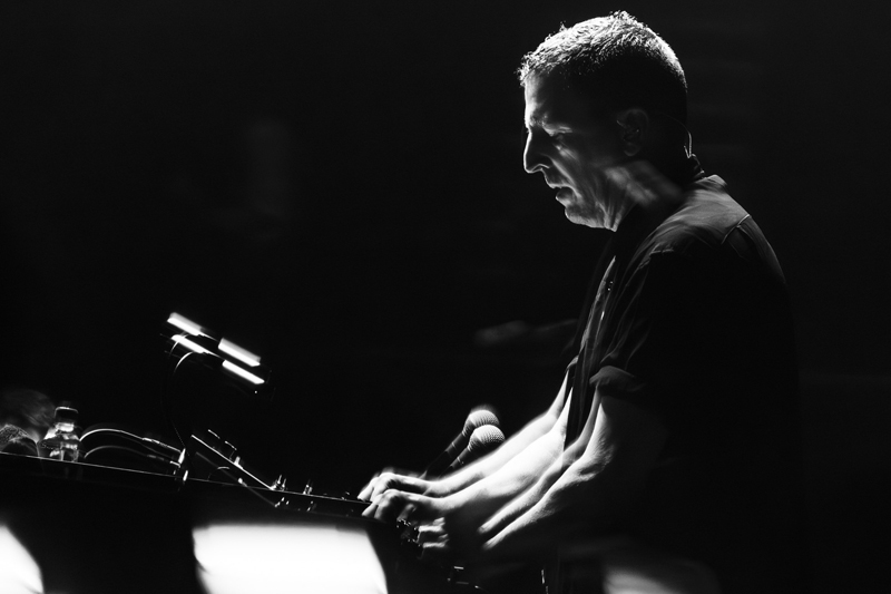 The production unfolds across two stages, each serving a distinct purpose. The main stage, surrounded by translucent scrims, is an immersive visual experience that matches the sonic intensity. But it’s the B-stage, planted mid-arena floor, where something more intimate occurs. Here, Reznor delivers acoustic renditions and rarities that contrast sharply with the sound happening elsewhere.