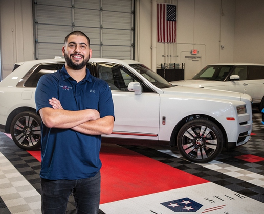 As the operating partner, Cuellar is responsible for overseeing daily operations, which includes taking inventory and training every position. “My favorite part of the job is when we show people the cars that they’ve always dreamed of and they get into the car and learn how to operate it,” he says. “And you can see the wow on their faces—see their dreams coming true.”
