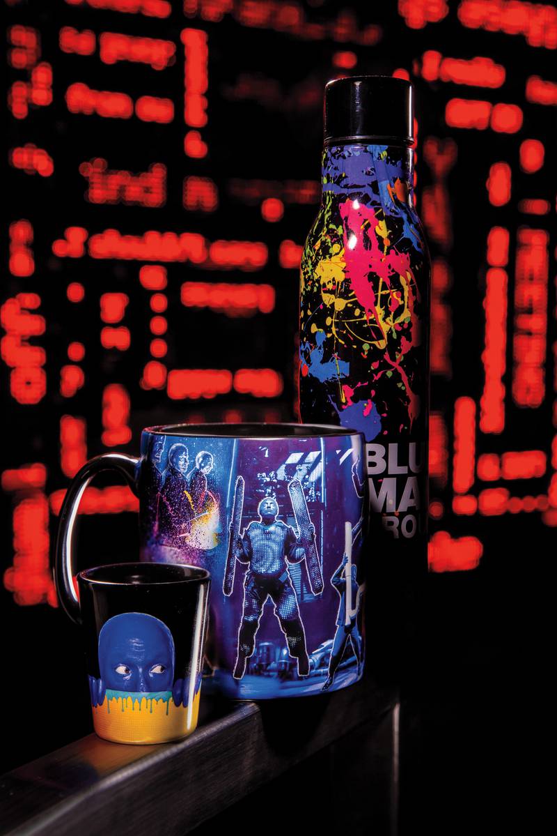 Take a piece of the Blue Man Group experience home with you by stopping into the show’s retail store. It’s filled with cool gifts and apparel. Tons of T-shirts with creative designs, as well as bags, toys, coffee mugs, canteens, shot glasses, keychains and collectibles. “Come see a show,” Gerrish says. “We love to have everybody out, especially now after being cooped up people want to go out and enjoy themselves, and that’s what we’re here for.”