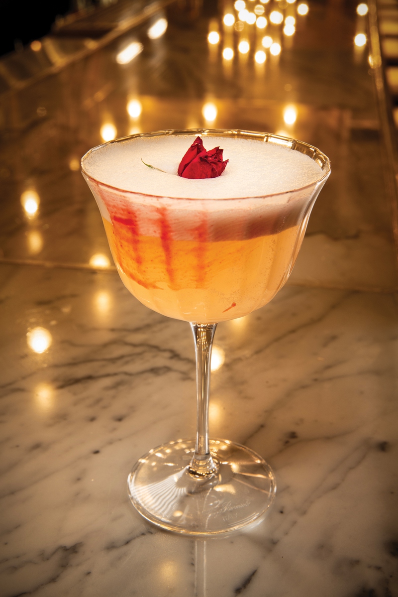 One of Barrera’s recent cocktail creations is the L-O-V-E. It’s a mix of Grey Goose Essences strawberry and lemongrass vodka, lychee syrup, Aperol, lime juice and egg whites. The brush of raspberry compote along the outside of the glass makes this cocktail over-the-top delicious.