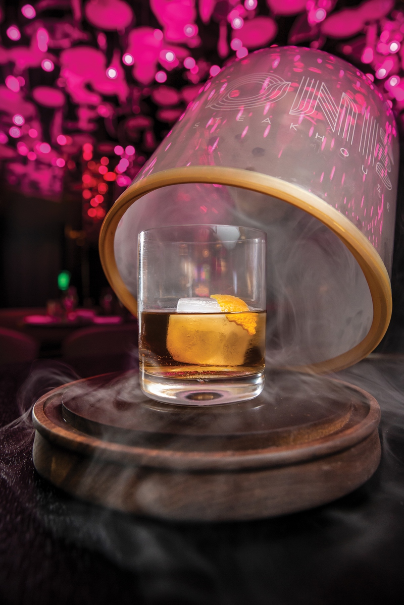 “Every night is Saturday night in Vegas if you want it to be,” O’Donnell says. “We show them a great time here at One Steakhouse. The experience is a beautiful, comfortable, sexy, fresh, cool, vibe restaurant with wonderful food and cocktails.” One of O’Donnell’s cocktail creations is the Bootlegger, a mix of Macallan 12 Year Double Cask, spiced apple syrup, Australian barrel-spice bitters, Australian aromatic bitters and brandied cherries. It is then smoked using both cedar and oak woods, and a blend of exotic teas.