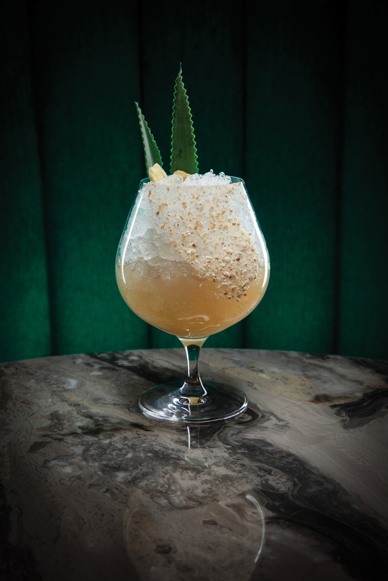 The cocktails are also the star of the show. A carefully curated menu of unique, showy cocktails adds to the Caspian’s experience. “We wanted to create these drinks that are fun and engaging, delicious, and (that) people will want to post to their social media,” Brunty says. Three standout stars include the Feet in the Sand with Patron Silver coconut-washed tequila, Cointreau, banana liqueur, orgeat, lemon, lime, bitters and a totally delicious toasted coconut sugar rim; “Fig”ure of Your Imagination with Makers Mark bourbon, Cointreau, fig jam, honey and lemon; and the Pear-fecta with Grey Goose La Poire vodka, cucumber, thyme syrup and lemon. Caspian’s also offers unique mocktails, bottle service, champagnes, wines, beer and classic cocktails. The negroni, espresso martini, Moscow mule, Pornstar martini, paloma and more—don’t pass these up, as Caspian’s nails it when it comes to re-creating the classics; and every classic cocktail can get a bump-up in excess by adding caviar-stuffed olives.