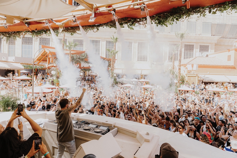 Over at Mandalay Bay, one of the longest-running dayclubs, Daylight Beach Club, is still going strong because of its mix of upscale Mediterranean-inspired surroundings, huge pool and ginormous stage for live music. VIP bungalows with private dipping pools surround the main pool that faces the stage set for performances by a mix of hip-hop artists and EDM DJs. Hip-hop artists take over every Sunday for LIT Sundays with DJ J-Nice, DJ Romero and 112 on May 4, DJ Joseph Gettright performs his blend of musical mashups on May 8-9 and the special Soaked Saturday parties with high-energy DJs, water guns, spray tunnels and champagne spray packages welcome DJ Kid Funk on May 10.